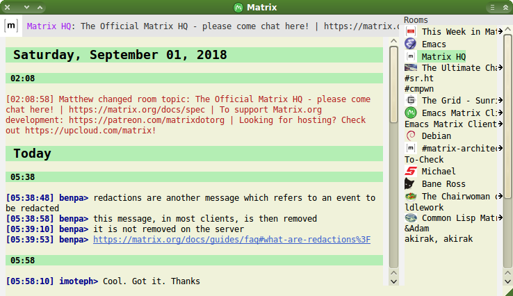 Also, you can see the room version and upgrade rooms in Quaternion (just like Matthew said on FOSDEM ;) ) - this feature is enabled by libQMatrixClient, so other clients are welcome to support room versions/upgrades too!All this is within the work on the upcoming release of libQMatrixClient 0.5 and Quaternion 0.0.9.4 - stay tuned!